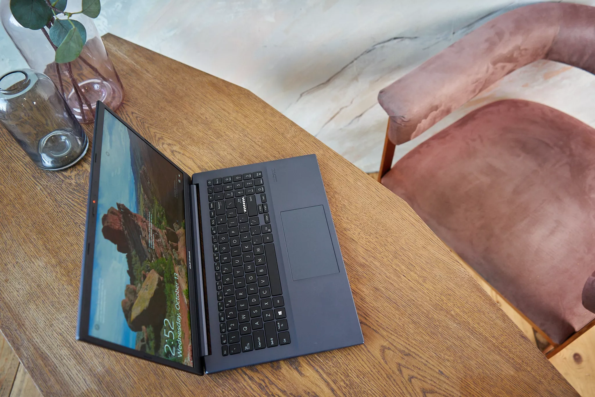 Ноутбук Vivobook 15 OLED выполнен в тонком и сверхлегком корпусе весом всего 1,65 кг, что делает его идеальным выбором для мобильных пользователей. Для сравнения, у большинства 15-дюймовых ноутбуков вес составляет 1,9-2 кг, с 1,65 кг встречаются 13-дюймовые ноутбуки. Фактически Vivobook 15 OLED предлагает сочетание просторного экрана больших ноутбуков и эргономичного корпуса маленьких. Такое устройство без труда поместится практически в любую сумку или рюкзак.