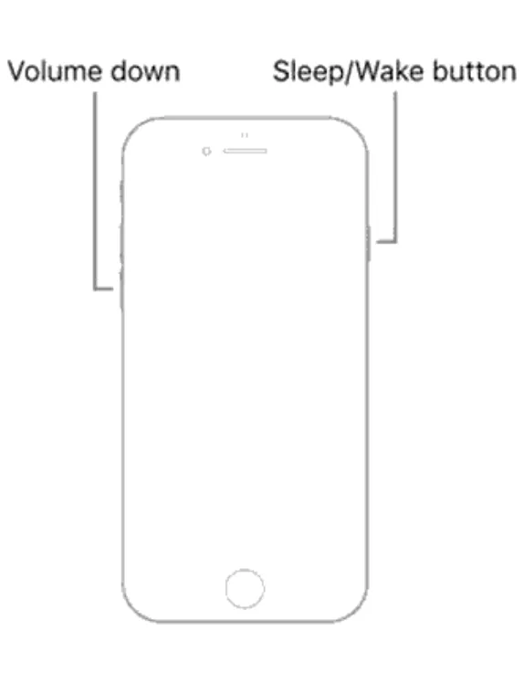 iPhone 7: нажмите и удерживайте одновременно кнопку уменьшения громкости и кнопку «Режим сна / Пробуждение». Когда появится логотип Apple, отпустите обе кнопки.