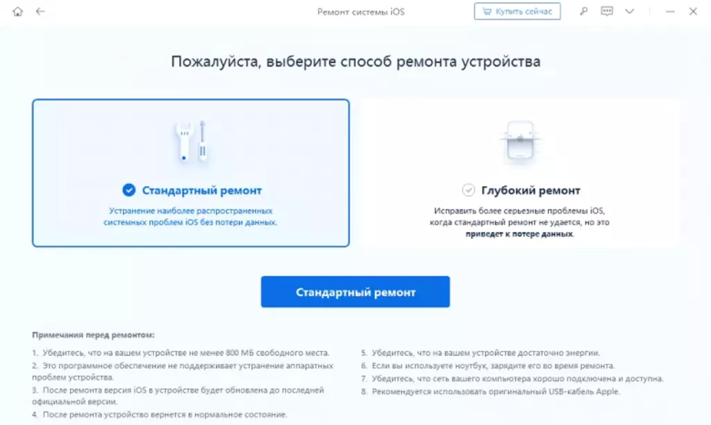 Метод 2. Устранение зависания iPhone на логотипе Apple без потери данных (с помощью специального ПО)