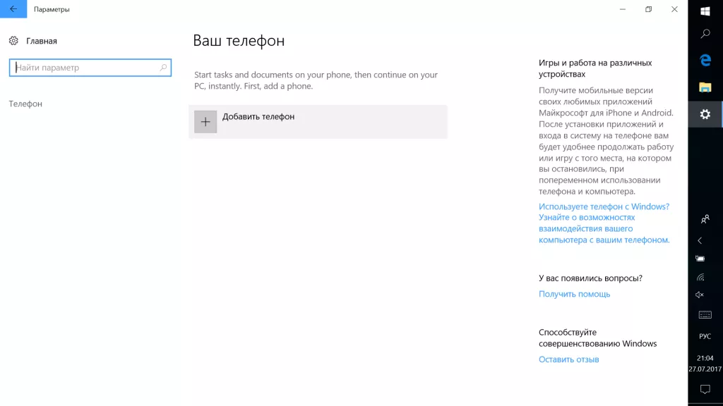 26 июля компания Microsoft выпустила тестовую сборку Windows 10, в которую добавлена возможность связать смартфон с компьютером. Сейчас это работает только с Android-устройствами, а в скором времени пользователи смогут привязывать к ПК айфоны.