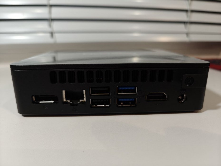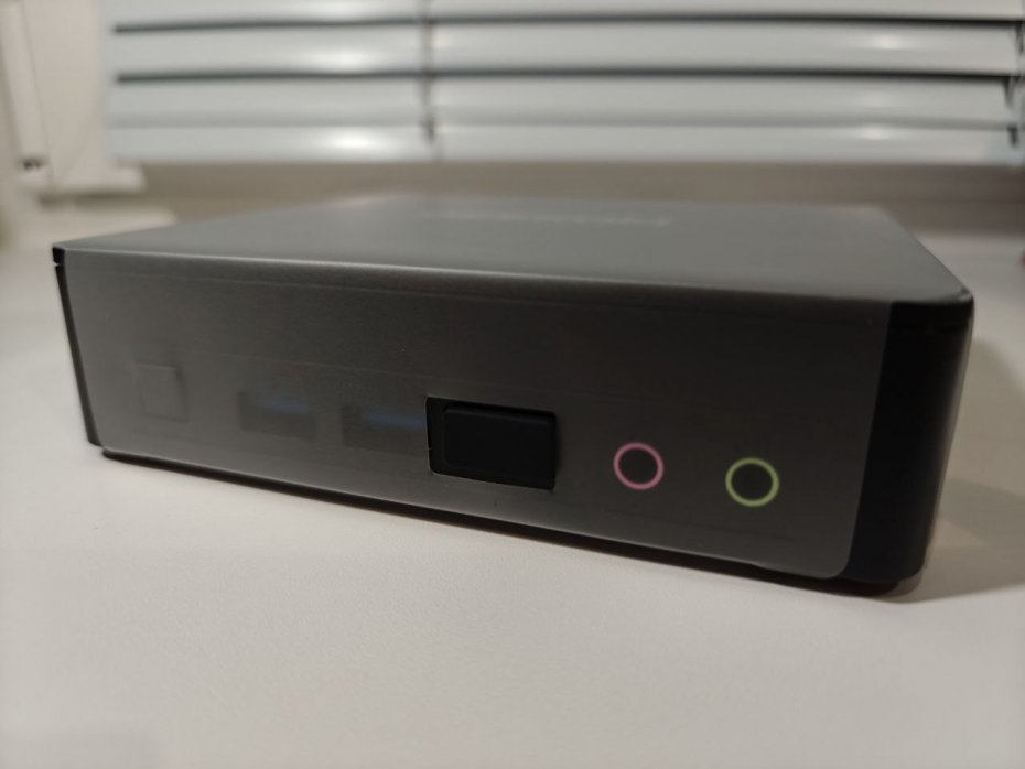 Дизайн у этой модели строгий и даже наверное непримечательный, но не обошлось без нескольких приятных глазу деталей. На переднюю панель вынесен световой индикатор работы (он не яркий, поэтому не слепит), два USB-порта, цветные разъёмы для наушников и микрофона (на этот раз раздельные), а заглушкой прикрыт универсальный 9-контактный разъём для подключения периферии (например, внешних накопителей).Корпус по большей части металлический (что хорошо для отвода тепла), верх пластиковый. Сзади разъёмов гораздо больше, там есть порты для подключения мониторов, проводного интернета, четыре USB-разъёма и вход для кабеля от блока питания. У этой модели нет миниатюрных портов USB Type-C и Thunderbolt, но это вряд ли критичный недостаток.