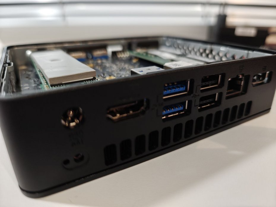 Это объясняется крайне низким тепловыделением от процессора (всего 6 Вт), обычно таким чипам хватает пассивного охлаждения с помощью термопасты и радиатора, но инженеры Geekom решили подстраховать своих пользователей и установили в этот компьютер вентилятор, который даже на максимальных оборотах работает едва слышно.
