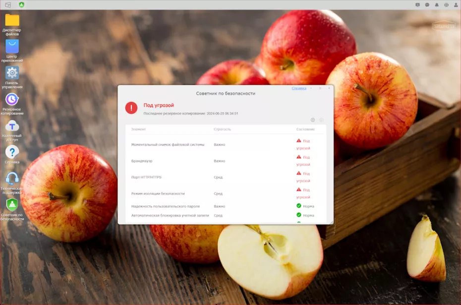 После инициализации пользователю становится доступна операционная система TOS с интерфейсом, напоминающим Windows. Это неудивительно, учитывая, что данный NAS фактически является специализированным компактным компьютером. TerraMaster предлагает десятки приложений для работы с файлами: организацию медиасервера, облачную синхронизацию, совместный доступ к файлам и многое другое. Доступ к данным возможен как локально, так и удаленно, с поддержкой шифрования и детальной настройкой прав доступа. Прошивка включает встроенный файловый менеджер, различные настройки, систему восстановления файлов и средства связи с техподдержкой.