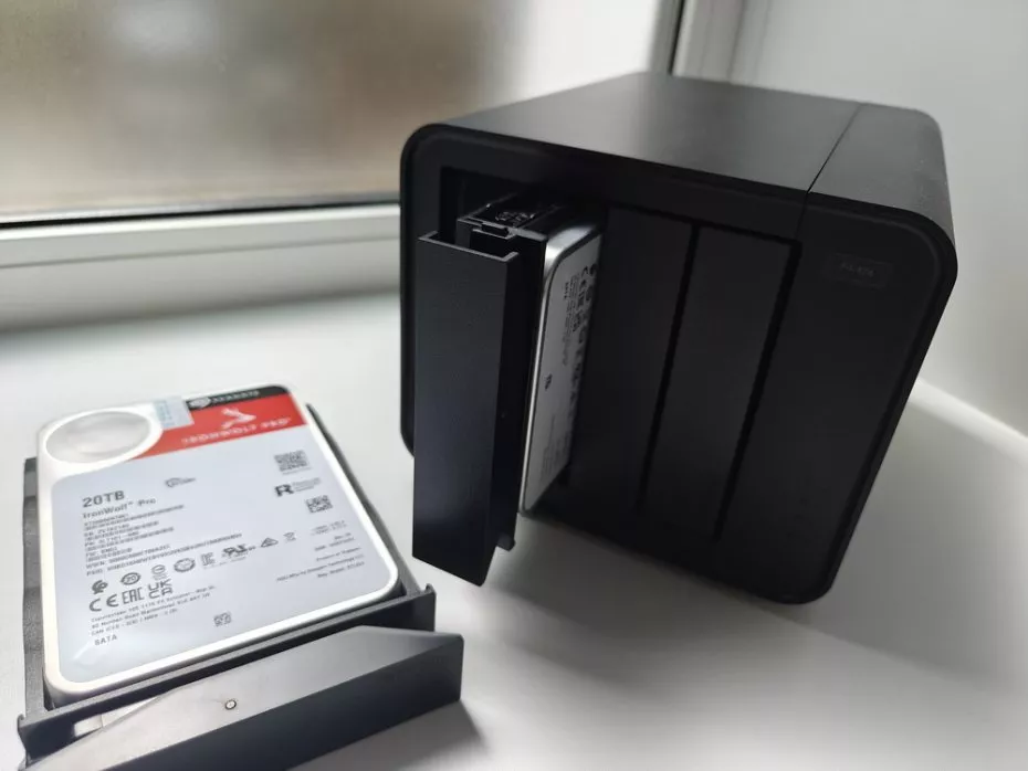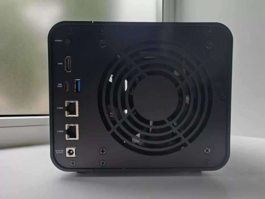 Внутреннее оснащение F4-424 впечатляет: материнская плата с процессором Intel N95, 8 ГБ оперативной памяти DDR5, работающей в двухканальном режиме, с возможностью расширения до 32 ГБ, два сетевых порта со скоростью 2,5 Гбит/с, пара высокоскоростных USB 3.2 Gen 2 для подключения периферийных устройств, HDMI для вывода изображения на внешний монитор и охлаждающий вентилятор. Общую производительность можно увеличить, установив один или два NVMe SSD в слоты M.2 для кэширования. Поддерживаются различные уровни RAID, а также файловые системы BTRFS и EXT4. Вентилятор работает почти бесшумно, он необходим для охлаждения накопителей, чтобы они не вышли из строя из-за перегрева.