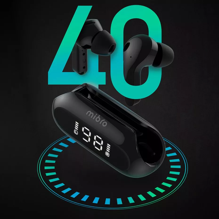 Эта модель обладает вставными силиконовыми амбушюрами и удобной индикацией уровня заряда на зарядном кейсе. Заряда наушников хватает на 5 часов музыки, 6,5 часов разговора по телефону, а с использованием кейса автономность продлевается до 40 часов. Как и у других моделей Mibro, эти наушники оснащены модулем Bluetooth 5.3, который моментально подключается к источнику звука и стабильно держит соединение.