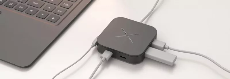 Для зарядки и питания используется адаптер, примагничивающийся к верхней крышке. В этот адаптер встроен USB-хаб с разъёмами USB Type-C, USB Type-A и Thunderbolt, кардридер и 3,5-мм аудиовыход. Интернет подключается только через Wi-Fi (поскольку Ethernet-порт отсутствует), а подключить периферию (например, мышь) можно к зарядному доку или через Bluetooth.