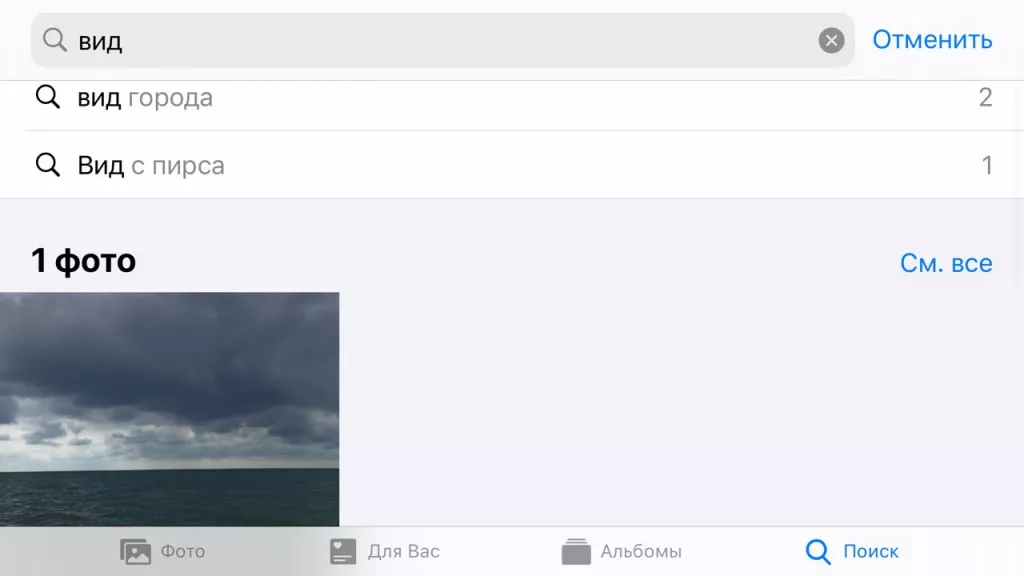 Вот и все, теперь нужно дождаться прохождения индексации (обычно несколько секунд), после чего на вкладке поиска можно ввести то, что вы указали в подписи — приложение Фото тут же покажет вам нужный снимок: