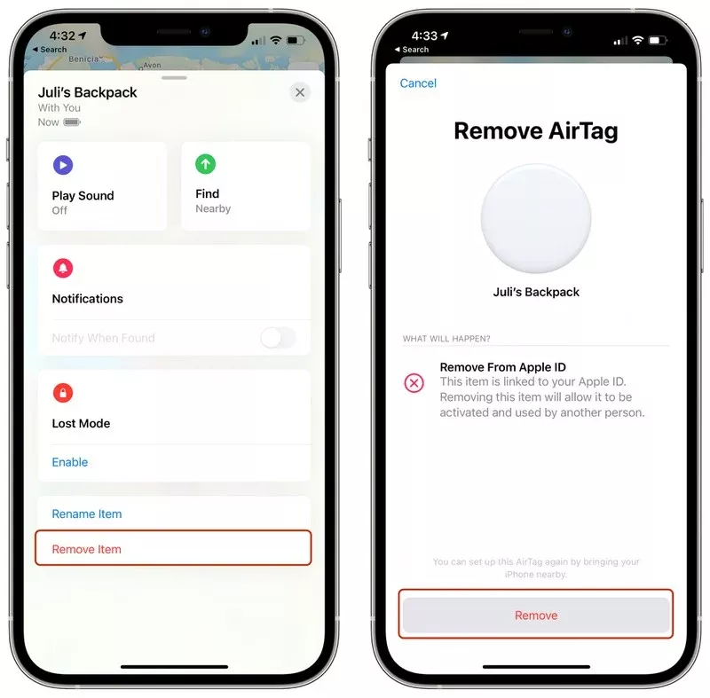 Если же AirTag находится вне радиуса действия Bluetooth, то сбросить его все равно можно, хотя это сложнее. При этом нужно понимать, что отвязать его в Локаторе в любом случае нужно: в противном случае даже после сброса подключить метку к устройству без вашего Apple ID не получится, то есть воровать AirTag большого смысла нет.