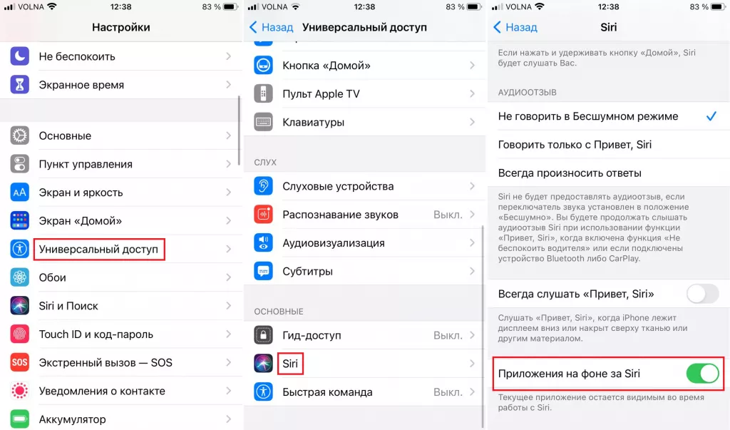 Да, возможно на iPad это удобно, но на относительно небольшом экране iPhone размытие фона выглядело интереснее и лучше выделяло ответы Siri. К счастью, его можно вернуть, хотя этот параметр неплохо запрятали. Находится он в Настройках > Универсальный доступ > Siri и называется «Приложения на фоне за Siri»: