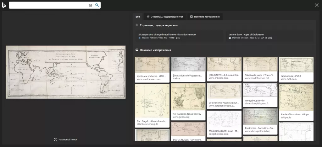Далее нужно согласиться с тем, что Bing будет обрабатывать ваши картинки, после чего откроется вкладка браузера с похожими изображениями: