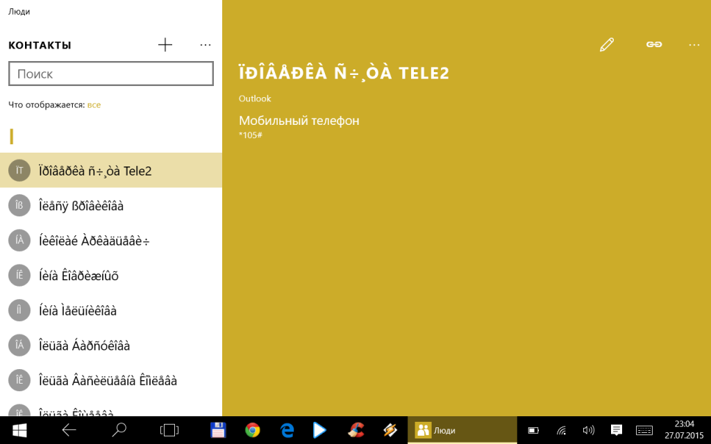 «Люди» — хаб контактов из Outlook. С кириллицей он пока не знаком, так что толку от него никакого.