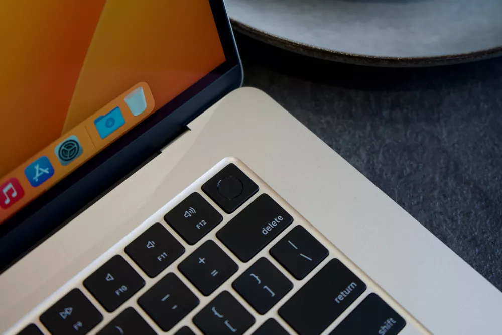MacBook Air с 15-дюймовым экраном оснащается клавиатурой островного типа без цифрового блока. Её ход, размеры клавиш и подсветка для меня стандарт. Среди устройств конкурентов очень сложно встретить аналогичную по качеству этих составляющих. В верхнем правом углу над клавишей delete расположился сканер отпечатка пальца Touch ID. В 99% случаев он срабатывает быстро, а его работа в целом не вызывает нареканий.