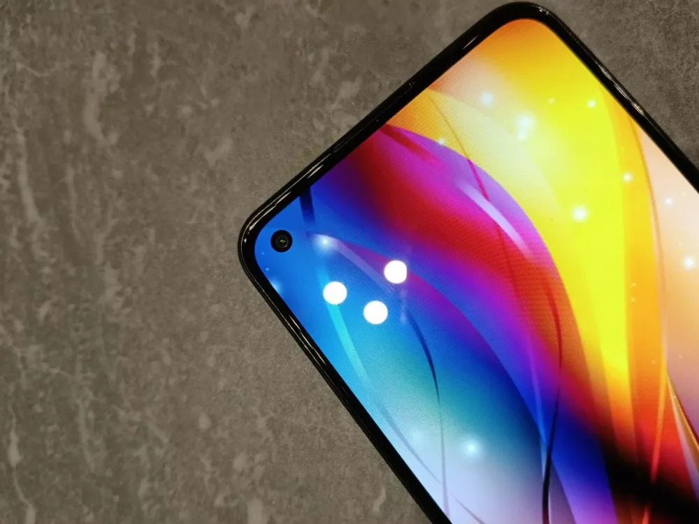 Дисплей плоский и защищён от царапин заводской пленкой. По бокам рамка очень тонкая, «подбородок» есть, но всё в пределах разумного. В левом верхнем углу — вырез под сэлфи-камеру, что смотрится приятнее уже привычного U-образного формата.