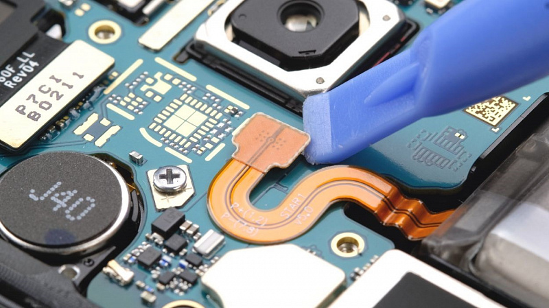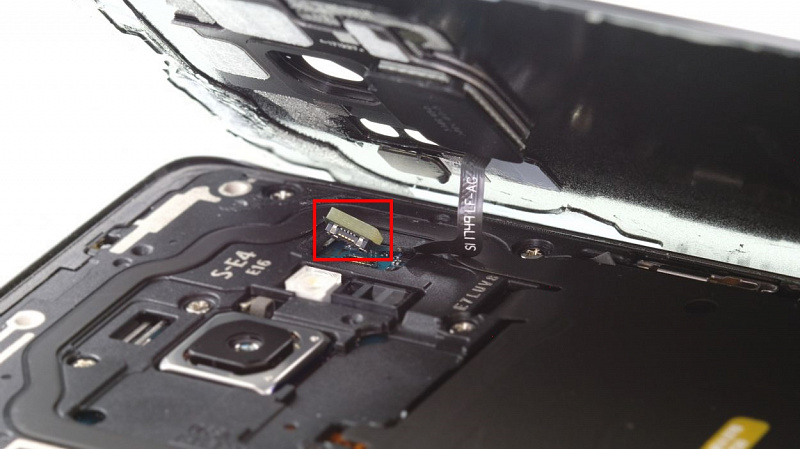 - Далее, подсоедините обратно датчик отпечатка пальцев. Поднесите крышку к корпусу смартфона как можно ближе и аккуратно подключите датчик.