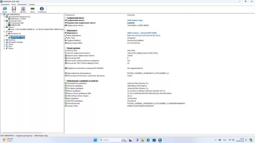 В целом характеристики компьютера выглядит сбалансировано. Мощный энергоэффективный процессор от «красных», современные интерфейсы для подключения, хорошие возможности для увеличения памяти (как оперативки, так и накопителя) и Windows 11 на борту.