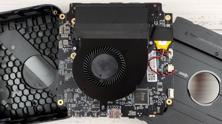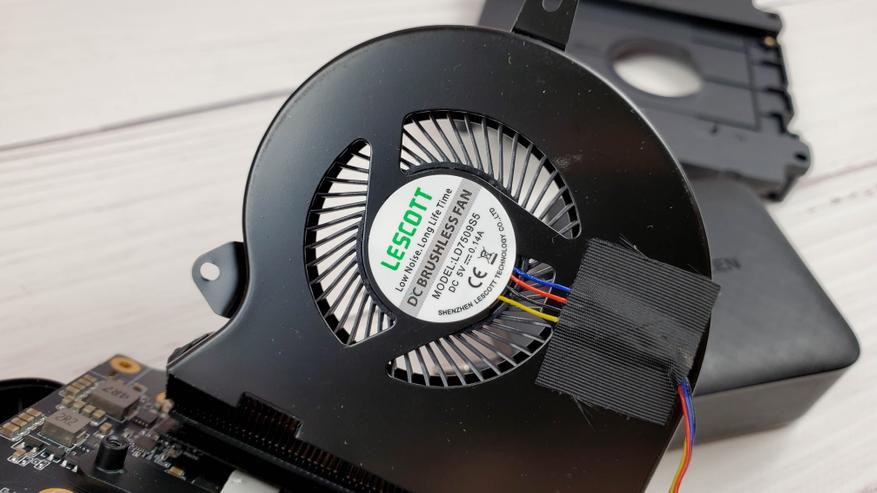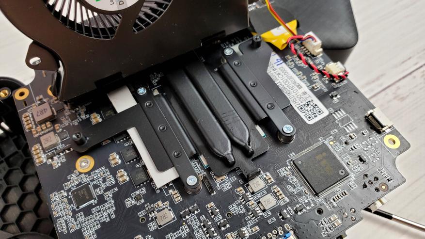 Далее можно извлечь материнскую плату и изучить систему охлаждения, которая установлена на чипсет. Вполне стандартный для такого рода ПК кулер + радиатор.