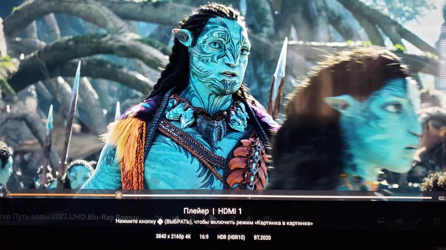 Что касается поддержки HDR, то она конечно присутствует. Телевизор автоматически переключился в HDR10, что можно увидеть по информационной панели в нижней части экрана. Если же смотреть HDR на SDR телевизоре\мониторе, то идет автоматическая конвертация в SDR и изображение будет без цветовых искажений.