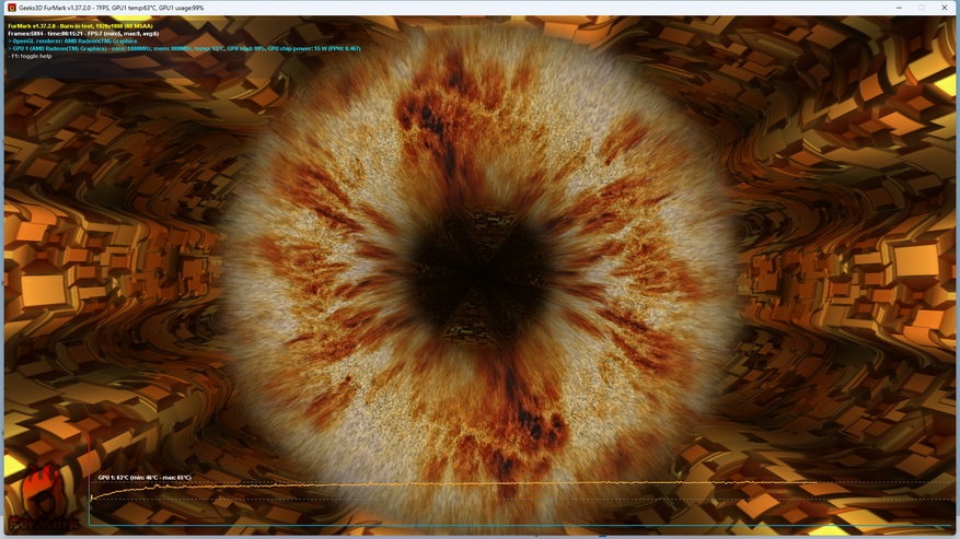 Бублик, который грузит видео карту, также не смог перегреть компьютер, температура лишь немного подросла и остановилась на 65 градусах.