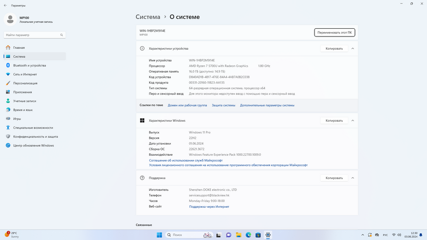 Не перестану удивляться умению китайцев продавать компьютеры с лицензионной операционной системой по цене голой операционной системы. Может у них особые условия с MS? Хз, но официальная Windows 11 Pro с вшитым в биос ключиком на борту. Работают все функции, система нормально обновляется.