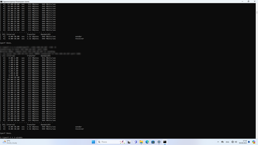 При проводном подключении средняя скорость составляет 949 Mbps.