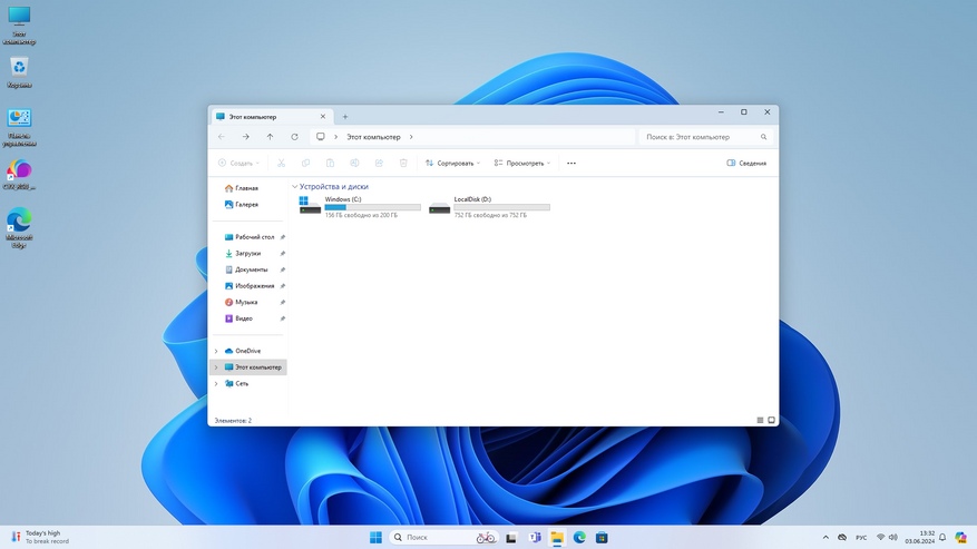 Накопитель разбит на 2 диска: под систему и программы выделили 200 GB на диске С и еще 752 GB на диске D под остальные задачи.