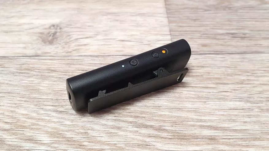 Питание берется с самого смартфона, т.е заряжать приемник не нужно. У него есть крохотный светодиод, который показывает статус: мигание означет поиск, постоянное свечение - активное подключение.