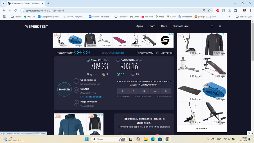 Те, кто внимательно читают обзор, уже видели на что способен этот ноутбук. В диапазоне 5 GHz это фантастические 800 Mbps на скачивание и 900 Mbps на загрузку. В моей личной практике это рекорд.