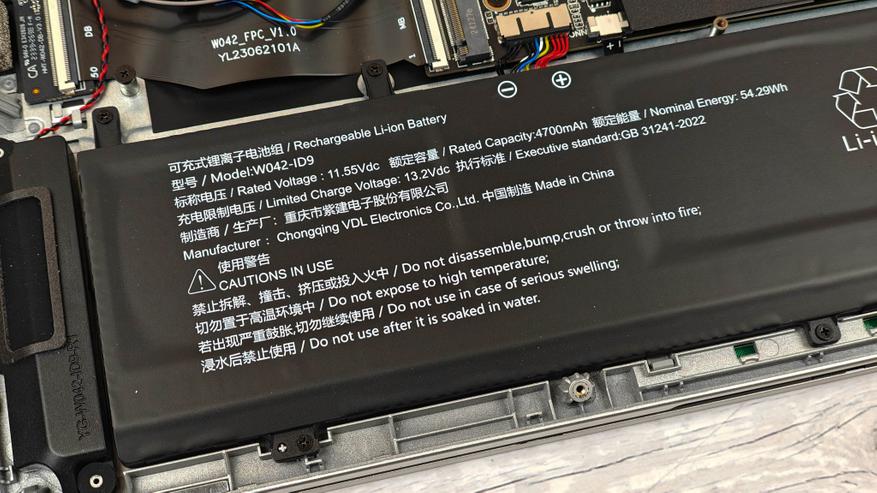 Рассмотрим все в деталях. Li-ion аккумулятор с модельным номером W042-ID9 и номинальной емкостью 54,29 Wh.