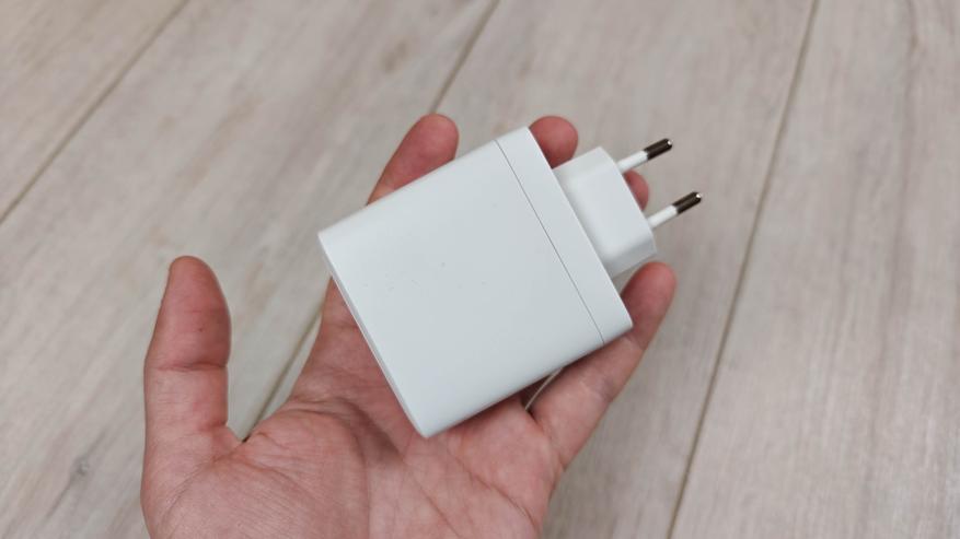 Так как ноутбук поддерживает зарядку через USB-C, производитель решил укомплектовать его не стандартной «ноутбучной», а более компактной и универсальной GAN зарядкой с USB-C интерфейсом.