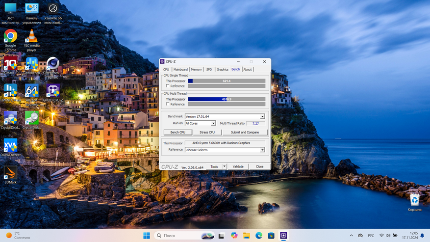 В Cinebench R23 ноутбук Ninkear A15 Pro набрал 9723 балла в многоядерном режиме и 1477 баллов в режиме одного ядра. В этом бенчмарке он оказался немного слабее, чем Ninkear N16 Pro 2024 на базе Core i7 13620H (9876\1737 баллов соответственно). Однако давайте не будем забывать, что Ryzen 5 6600H это 6 ядер\12 потоков, а Core i7 13620H это 10 ядер\16 потоков. И разница не так чтобы и уж очень сильная, при этом в графических тестах Ryzen 5 6600H показал себя куда лучше.