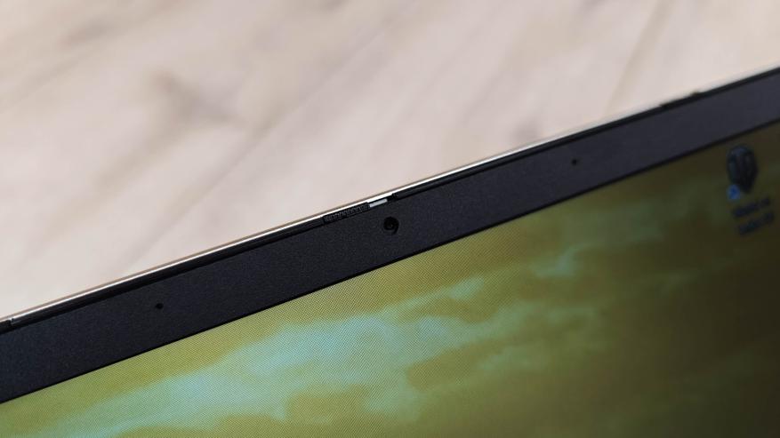 В верхней рамке привычно разместили глазок веб камеры, а вот над ним можно заметить интересную деталь — физический ползунок, который закрывает камеру шторкой. Ценители конфиденциальности будут в восторге, синий скотч отправляется в анналы истории.