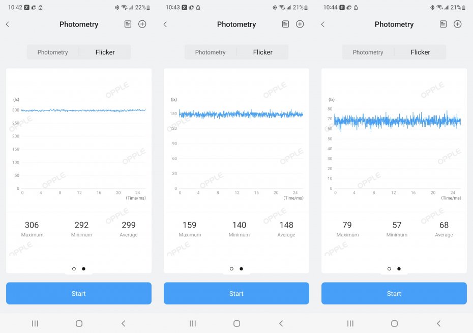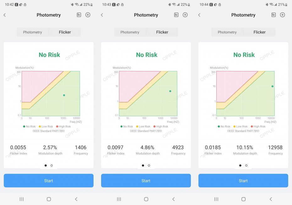На любых уровнях яркости коэффициент пульсаций находится на минимальных значениях.