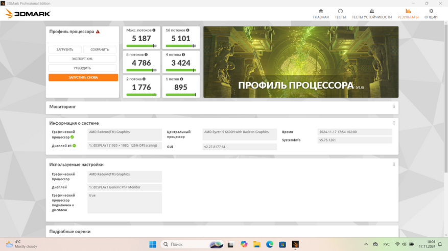 И профиль процессора, который показывает производительность ноутбука в разных режимах работы.
