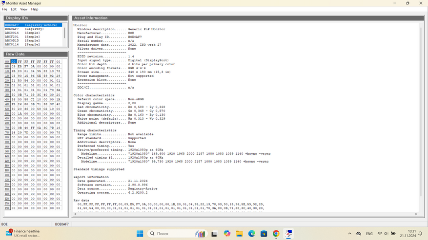 Чего не могу сказать о дисплее. Согласно утилите Monitor Asset Manager здесь использовали бюджетную IPS Full HD панель BOE0AF7 с частотой обновления 60 Hz.
