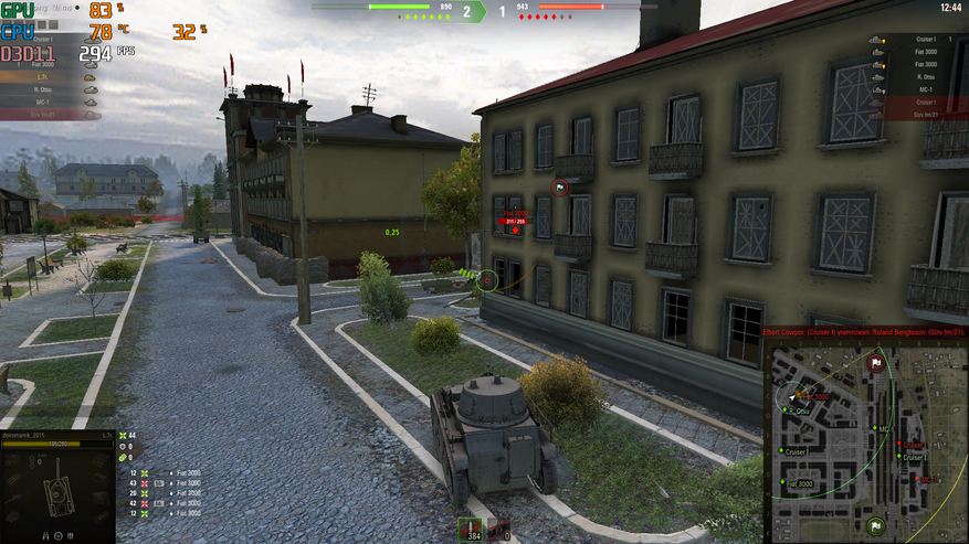 После всего, что я увидел в синтетике, мне захотелось поиграть. Установив World Of Tanks (полноценную компьютерную версию) я выставил Full HD и по привычке выбрал низкие настройки графики. Ну, а чего ожидать от встройки, подумал я и запустил игру. Увидев средние 300 FPS я мягко говоря офигел и это при том, что графический ускоритель даже не уперся в свой потолок (80 — 85% загрузки).