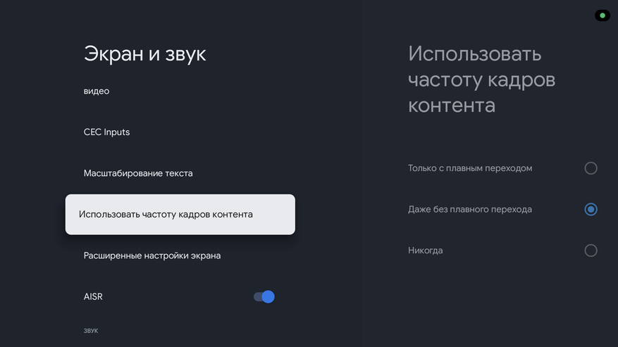 Поддерживается автофреймрейт (автоматическое переключение частоты отображения в зависимости от контента). Для поддерживающих телевизоров, есть функция QMS (переключение с плавным переходом). Для остальных будет обычное переключение с кратковременным уходом в черный экран. Автофреймрейт работает только в поддерживаемых приложениях, например, Vimu Media Player, Kodi или TiviMate IPTV Player.