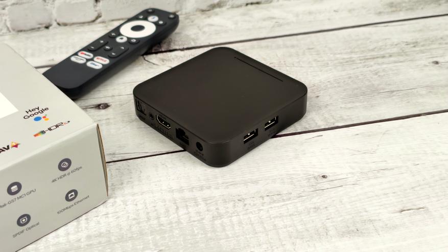 По разъемам имеем очень приличный набор, в особенности если сравнивать с популярной Xiaomi TV Box S 3rd Gen. Помимо HDMI 2.1, здесь есть LAN 100 для подключения интернета через кабель, SPDIF для вывода звука через оптический SPDIF, и даже композитный AV.