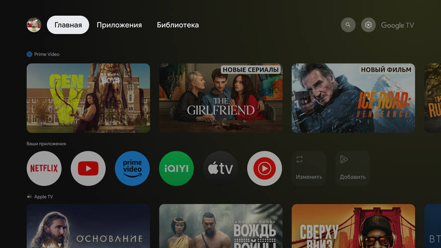 RockTek GT1 работает на Google TV 12. Положение каналов с рекомендациями изменить нельзя, глобальный поиск по системе не работает (только внутри приложений), порядок ярлыков можно настроить по своему усмотрению. В общем все как обычно.