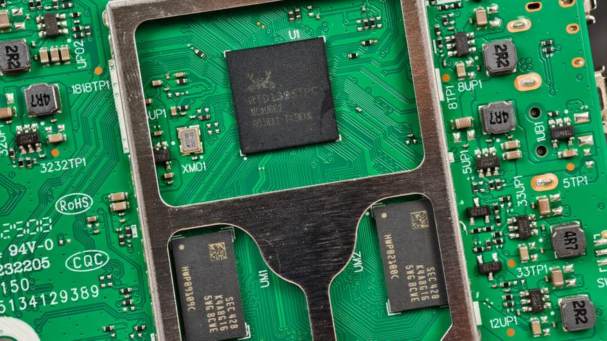 Посмотрим на компоненты поближе: процессор RTD1325TPC и 2 чипа оперативной памяти DDR4 производства Samsung с маркировкой K4A8G165WG BCWE (2 х 1 GB).