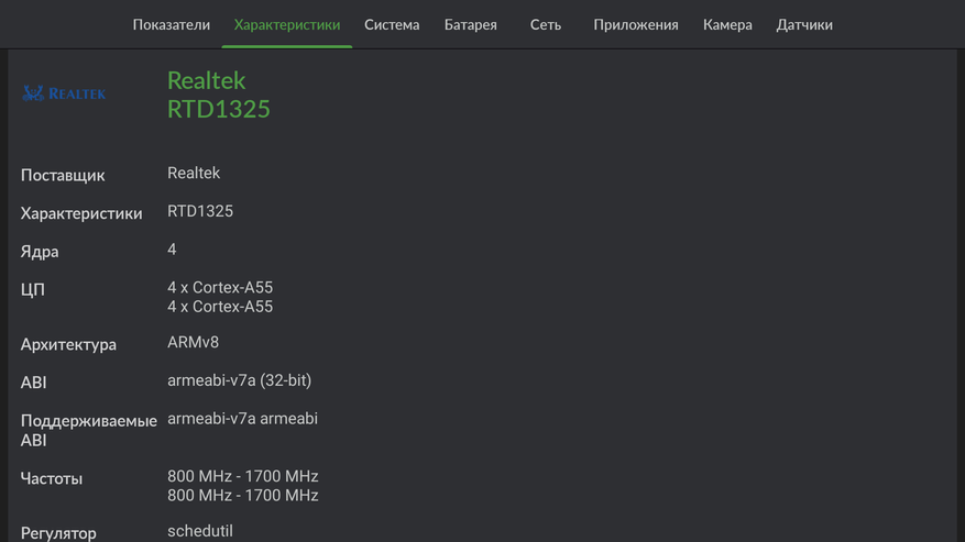 Приставка базируется RTD1325, процессоре, который впервые появился в моделях 2025 года. Это энергоэффективное четырехядерное решение на ядрах Cortex A55 с графическим ускорителем Mali-G57. Здесь есть аппаратная поддержка современных кодеков, а также поддержка функций ИИ. При этом благодаря современному техпроцессу процессор выделяет небольшое количество тепла и не страдает от перегрева. По производительности он на уровне Amlogic S905X4. Если углубится в изучение нюансов, то можно выяснить, что в вычислительной части (процессорной) он немного слабее, но в графической — более производительный.