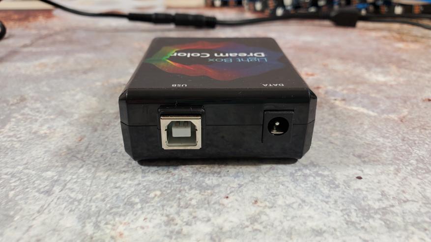 В устройстве всего 2 разъема: USB для подключения к TV или компьютеру и DATA для подключения к ленте.
