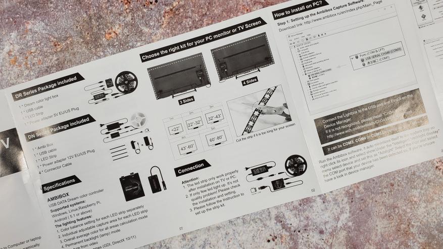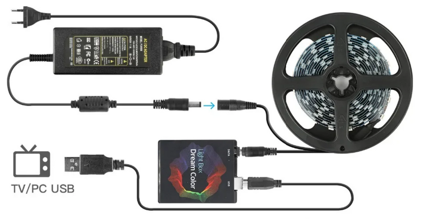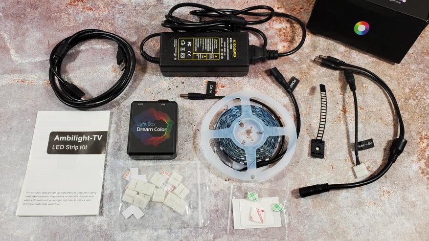 Также стоит заранее знать, что подсветка будет работать либо на компьютере с операционной системой Windows, либо на телевизоре с операционной системой Android. Т. е всякие LG и Samsung со своими Tizen и Web OS работать напрямую не будут. Но можно подключить Android приставку и уже через нее организовать работу подсветки. При подключении сложностей быть не должно, все расходники и необходимые для подключения аксессуары идут в комплекте.