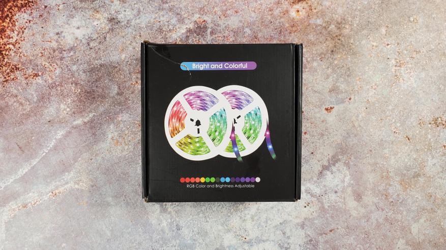 В общем получил я коробочку с RGB-лентой и всем необходимым для ее установки. Никакого указания производителя и технических характеристик, обычный ноунейм.