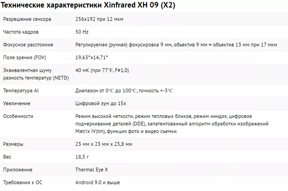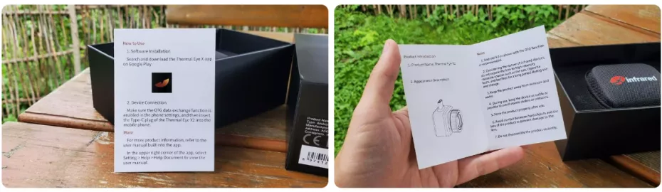 А также небольшая инструкция, где указано название приложения — Thermal Eye X (доступно в Google Play) и сказано о том, что смартфон должен поддерживать OTG.