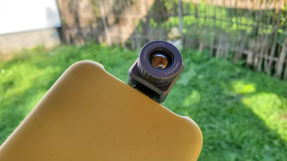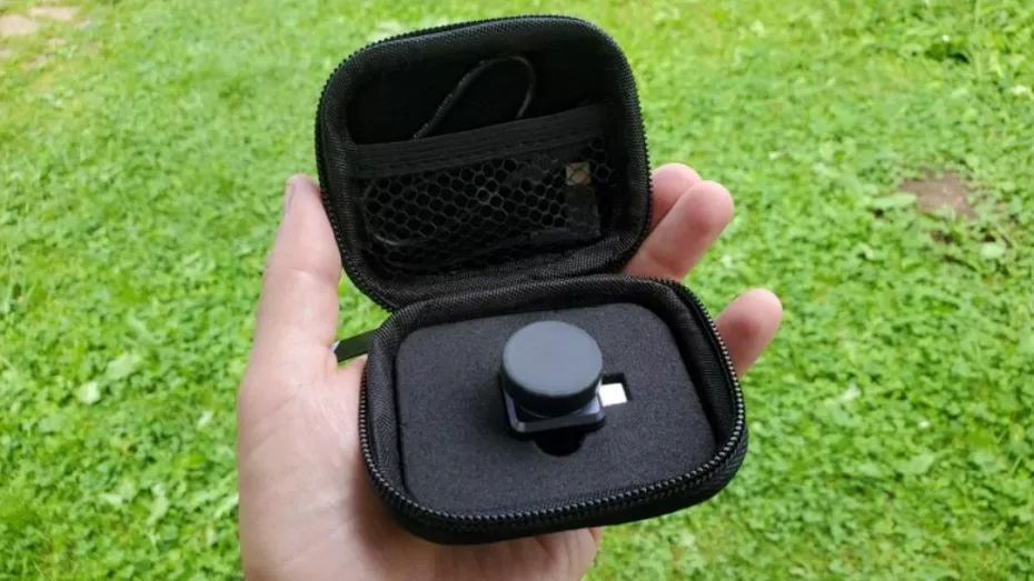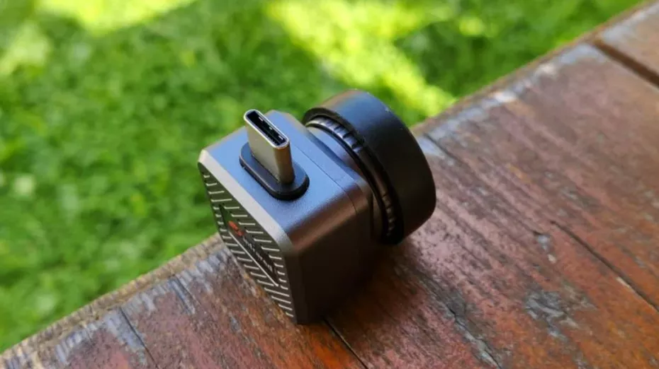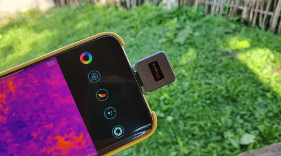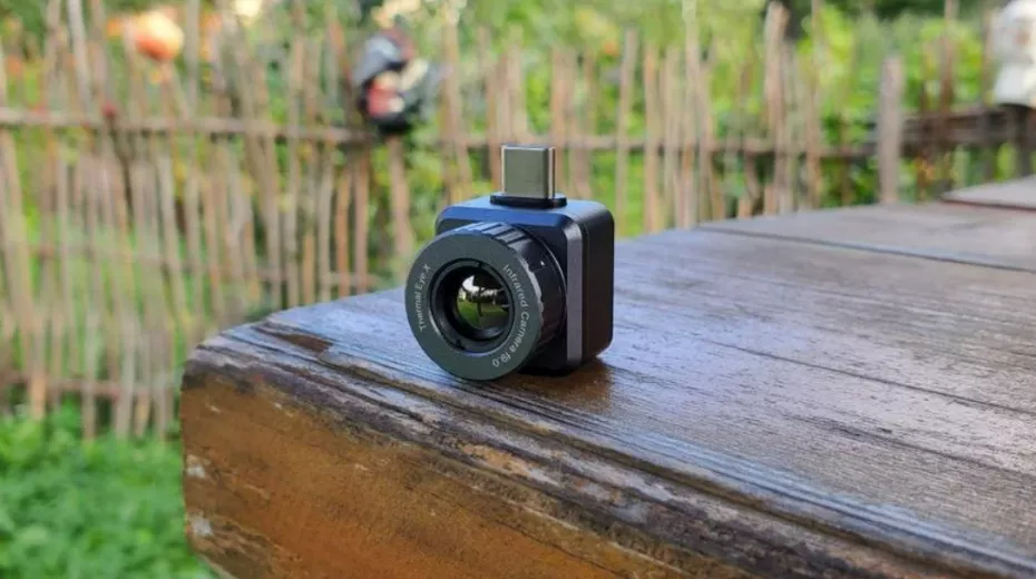 Сам тепловизор крохотный, а его объектив закрыт защитной крышечной из мягкой резины. Удлиненный разъем USB-C позволяет подключить его сразу к смартфону (напрямую).
