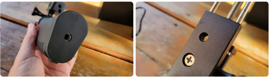 Есть дополнительные разъемы с резьбой. Например, для штатива или подвеса дополнительного оборудования, такого как лазерный указатель.