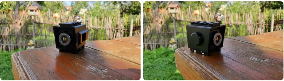 На тыльной стороне есть наклейка с предупреждением о том, что тепловизор нельзя направлять на солнце и перегретые объекты. Судя по всему это может повредить чувствительный сенсор.