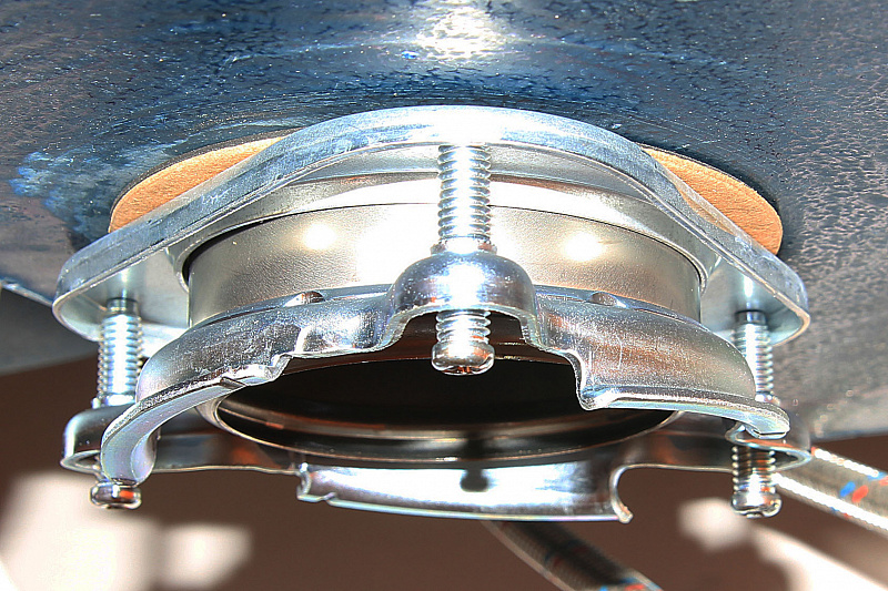 Сбоку корпуса подключаются сифон (диаметр 38 мм) и перелив, а с помощью разветвителя – выход от посудомойки. Лучше всего не использовать бутылочный сифон, поскольку в нем могут скапливаться переработанные отходы. Также перед установкой стоит позаботиться о доступности рядом розетки. Чтобы обезопасить пользователя, для запуска используется пневмокнопка. В столешнице или углу раковины проделывается отверстие диаметром 33 мм, куда устанавливается кнопка вместе с декоративной накладкой (может быть стальная, хромированная или пластиковая), другой конец шланга подключается к соплу на дне диспоузера. Там же находится клавиша принудительного перезапуска.