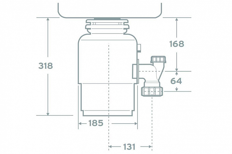 Измельчитель имеет форму цилиндра диаметром 185 мм и высотой 318 мм. Благодаря системе Quick Lock, установить его можно без привлечения специалиста. Монтируется диспоузер под мойку к сливному отверстию раковины (подходят как металлические, так и из искусственного камня), диаметр должен быть 90 мм. Корпус изготовлен из прочной платсмассы, а все внутренние элементы – из нержавеющей стали. За счет более компактных размеров, чем у аналогичных по мощности аналогов, под раковиной остается еще достаточно пространства. Большой вес (8.2 кг) и специальное кольцо служат для гашения вибраций.