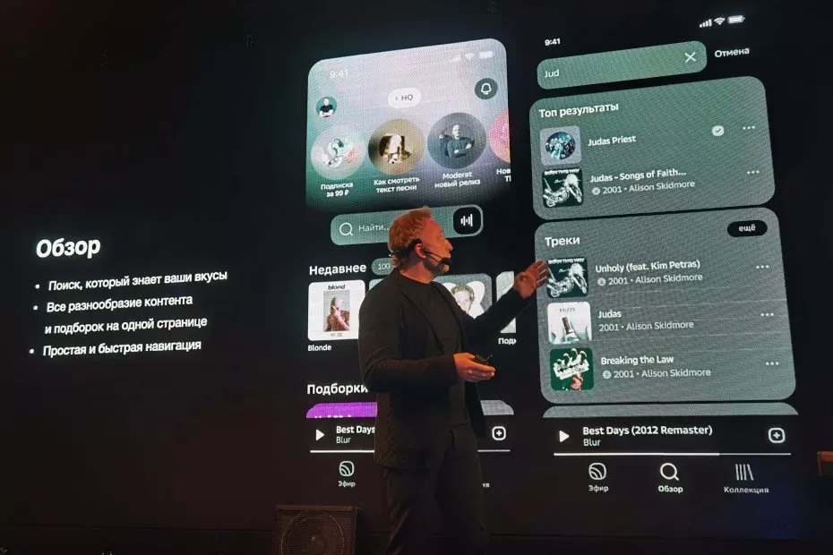 Обновленное приложение выглядит максимально лаконично: в нем всего три раздела, созданные на основе запросов пользователей – «Эфир», «Обзор» и «Коллекция». В «Эфире» искусственный интеллект старается предугадать желания слушателя, выдавая максимально актуальный в данный момент контент, учитывая уникальные предпочтения, контекст и даже настроение. Больше не нужно указывать все эти параметры, а достаточно просто открыть приложение и начать слушать. И чем больше пользователь будет слушать, тем более точными станут рекомендации.